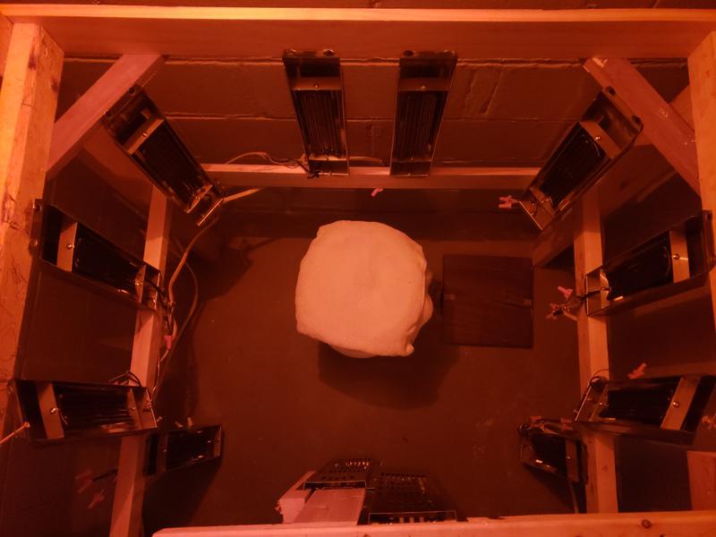 I made this sauna out of 3 little tables. I have a fan blowing on me to get rid of excess latent heat so I can get a deep heat co-efficient. I lay on my pemf mat while doing all of this.