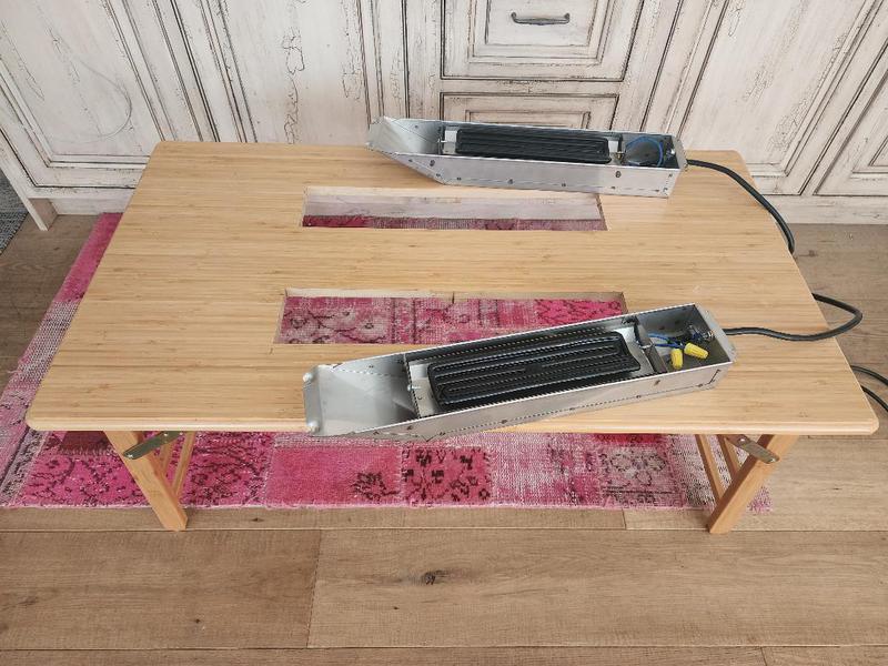 This is what it looks like when I cut out the sections for the heaters. These are high glass black ceramic heaters. These are not cheap Chinese import heaters that are found in most saunas.